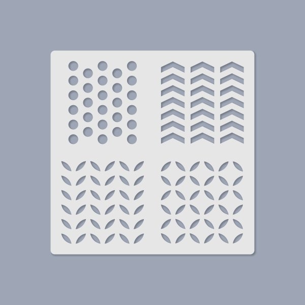 The stencil material is 0.2 mm thick, flexible, transparent plastic. Suitable for making motives.