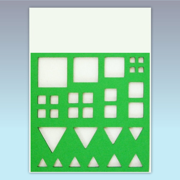 The board contains 10-35 mm shapes – triangle, square – and one polysterene board.