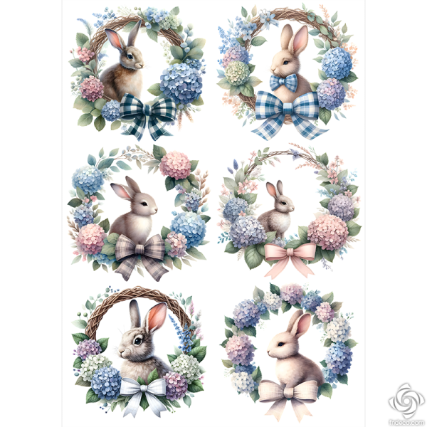 Frillit Rice Paper Napkins - A4 - FPR-K179 - Easter Hydrangea Wreaths