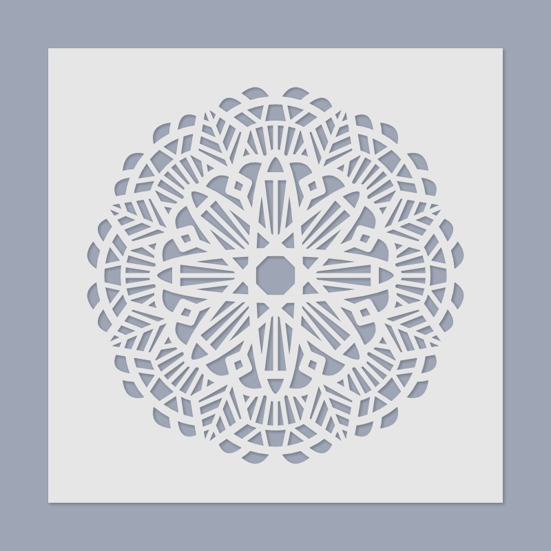 A stencil anyaga áttetsző műanyag, így megkönnyíti a minta pontos elhelyezését a festendő felületen.