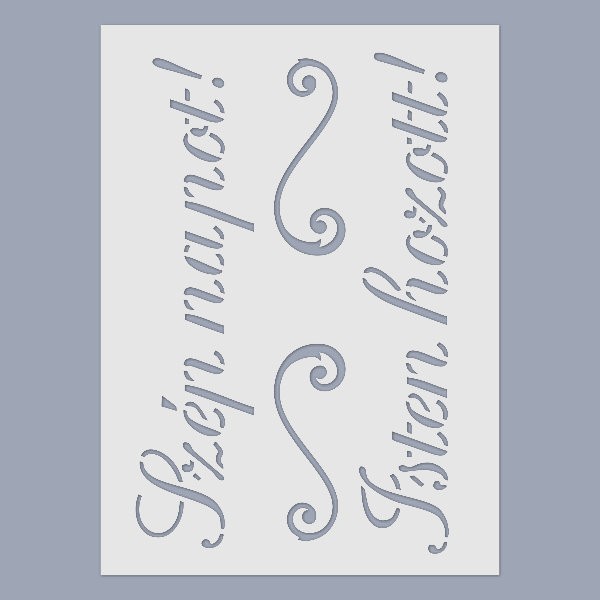 A stencil anyaga áttetsző műanyag, így megkönnyíti a minta pontos elhelyezését a festendő felületen.